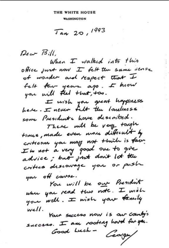 And, I want to follow it with a note from President George H.W. Bush to the incoming President Bill Clinton.