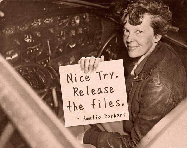 And it seems that pressure is working. The President, at long last, after much public clamor, is going to release every bit of information the government has on Amelia Earhart. At last our long national nightmare is over.