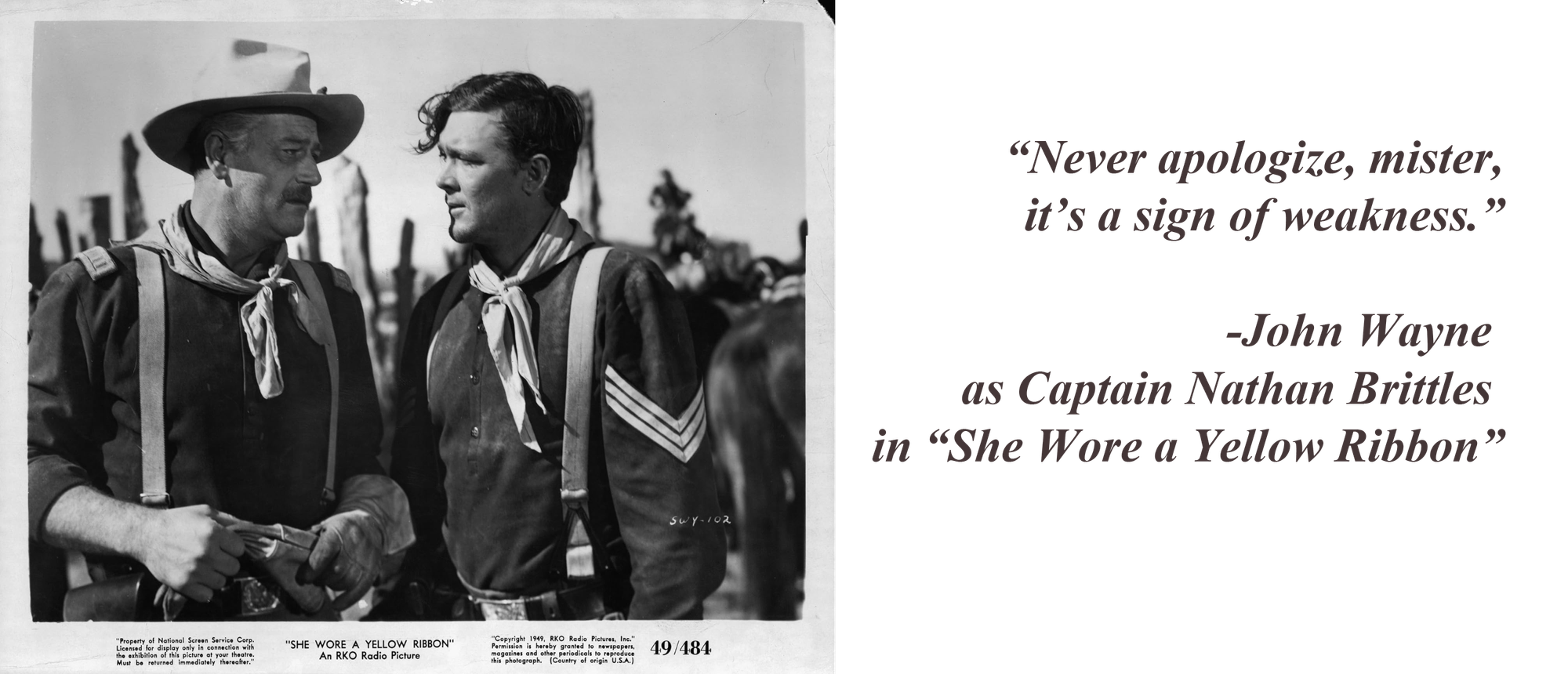 And I wanna be clear and offer a more nuanced view... Ford and Wayne were masters of their craft, and most of their work holds up. That is if you give them a pass for being products of their own, unenlightened era - an era known for its racism and sexism. Their idea of masculine values applied also to our national character: freedom, integrity, courage, and perseverance. Importantly, their worldview expected personal honor, integrity and self-sacrifice. Yes, it was a white, patriarchal culture, but the characters, films, and myths that were their stock and trade were usually centered on honor and chivalry (on their sometimes violent terms) in service of a greater good.