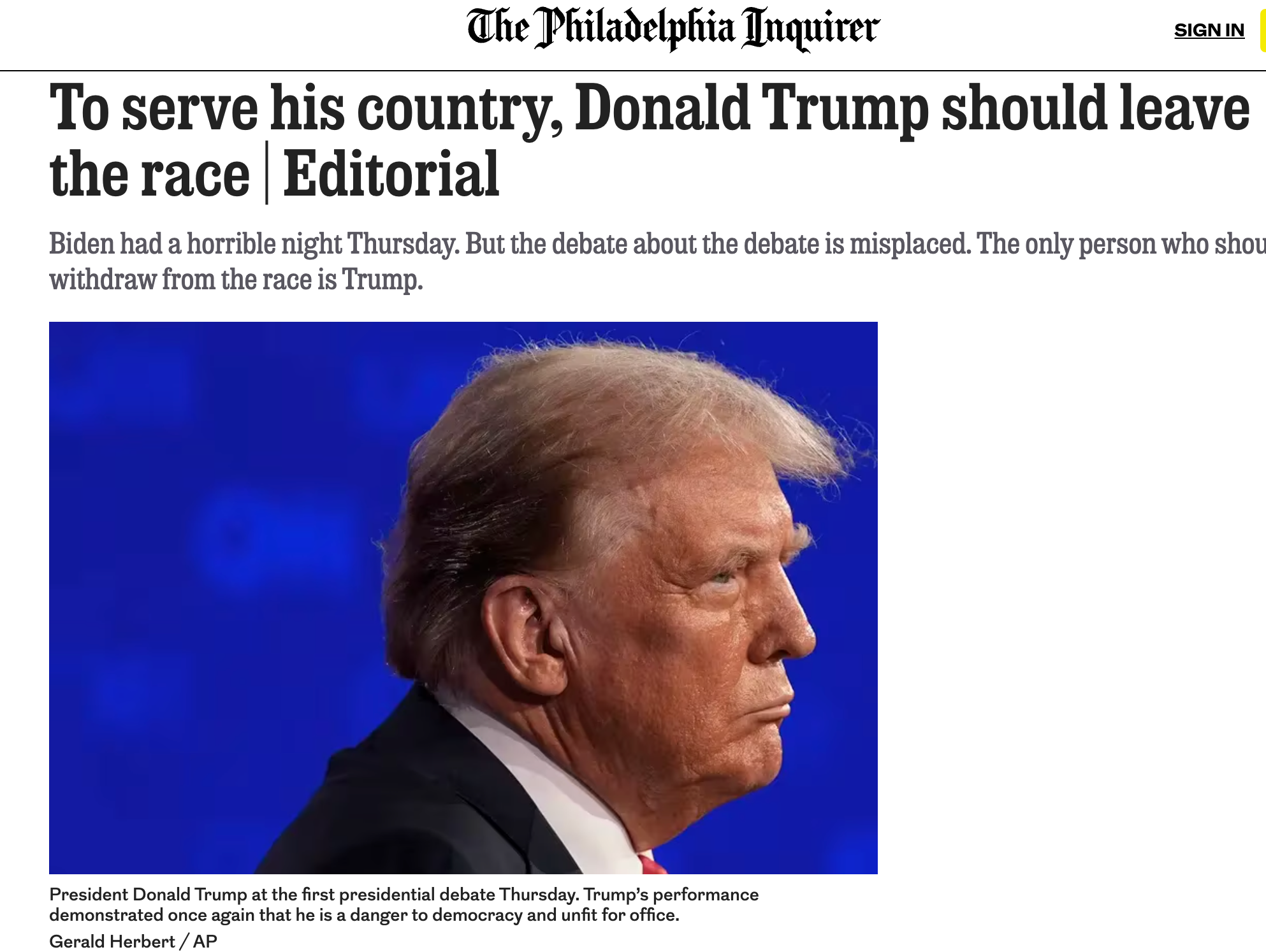 In a great example of what should have been the national headline, the Philadelphia Inquirer ran the story correctly.