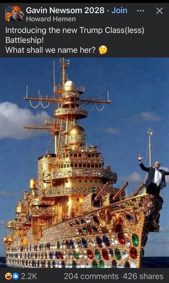 Naval experts, former military officers who are free to speak, and virtually anyone who is a student of modern warfare declared the "battleship" obsolete decades ago. Why? Because they have all become big ole targets for enemy forces or random terrorists. Just a look at the Ukraine war shows Russia losing dozens of warships, small and large, to inexpensive drones. If needed, more expensive missiles, some that fly at hypersonic speed, can be launched from hundreds of miles away. For a large, slow ship to stay afloat, it must be loaded up with millions of dollars of complex defensive technology. And generally speaking, they're not needed for attack operations. Smaller, faster ships that are built for specific operations are more useful. It's not a very smart move to put all your war eggs in one floating basket. You become the hunted, and not the hunter. And the hunters just need a couple $1000 drones that can carry a bomb or torpedo. And there are a lot of countries around the world that would be happy to shoot at that decal on the back.