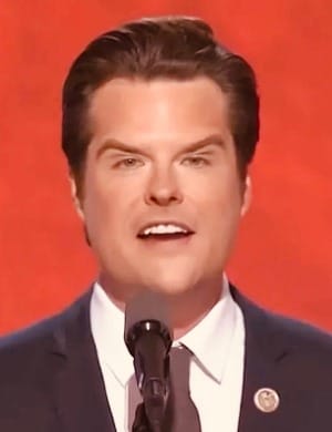 Matt Gaetz demonstrated his penchant for questionable choices (some of many) via his silicone smirk. A plastic pedophile (among many in Trumplandia) shows off his almost lifelike features that scream, "Stranger Danger."