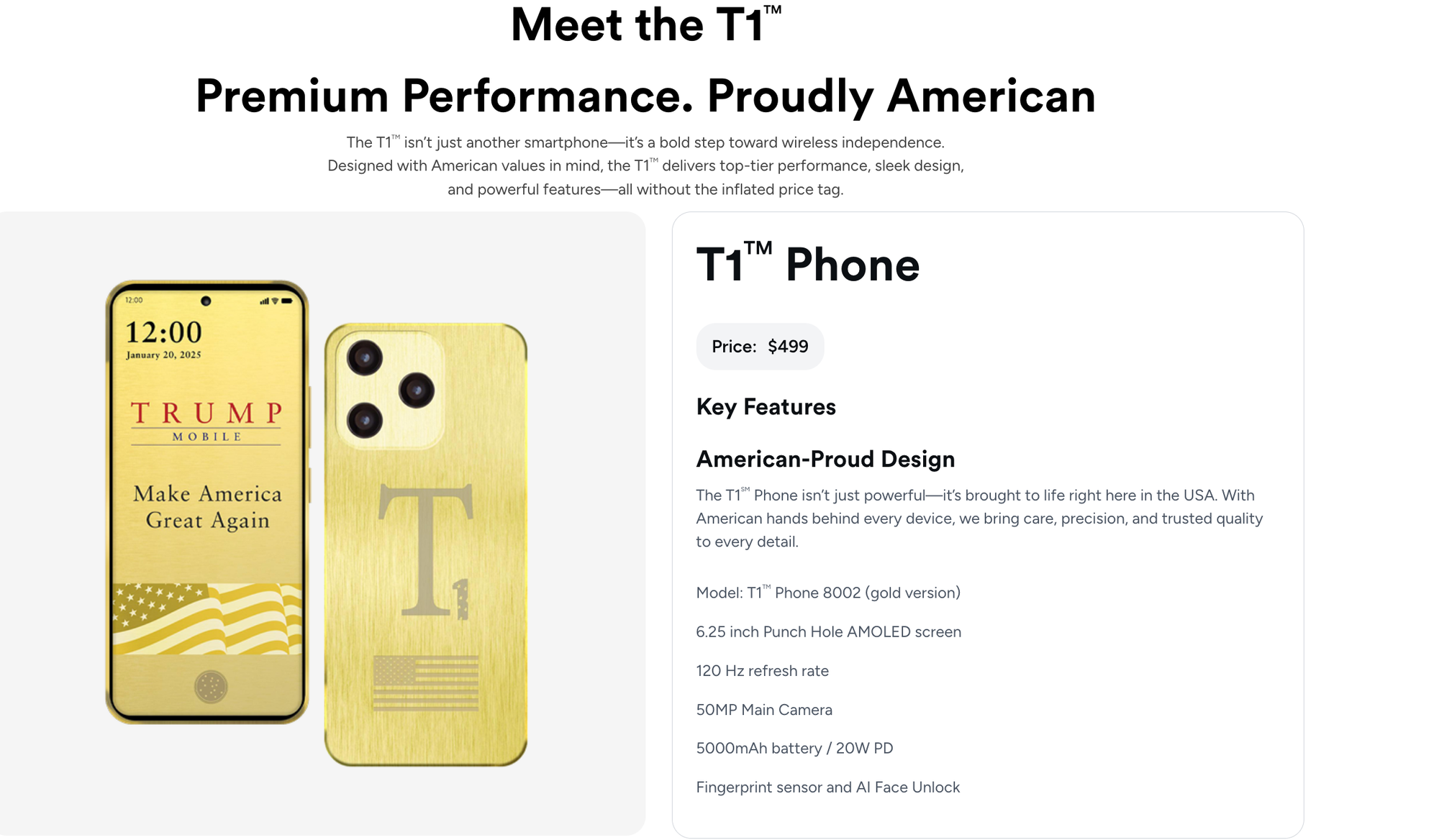 According to the Trump Mobile website (you look it up, I won't link it here!) these imaginary communications computers are "...brought to life right here in the USA. With American hands behind every device, we bring care, precision, and trusted quality to every detail." If you read that carefully, you will note that it no longer says "Made in the USA." Because no smartphone of any kind can be made, parts and all, in the States for that price.