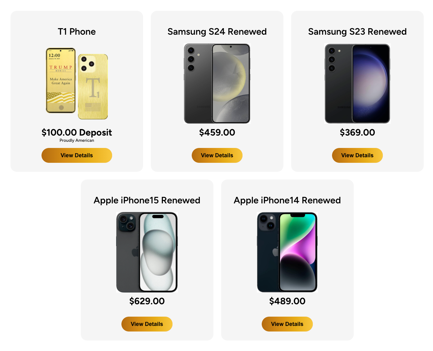 A more subtle sign of Derangement sufferers is that they are holding a golden phone to their ear. Or rather, maybe in their heart, because the oft-touted Trump Mobile flagship phones haven't "shipped" yet, but "...when we release the T1TM Phone later this year, you'll be the first to receive it!"