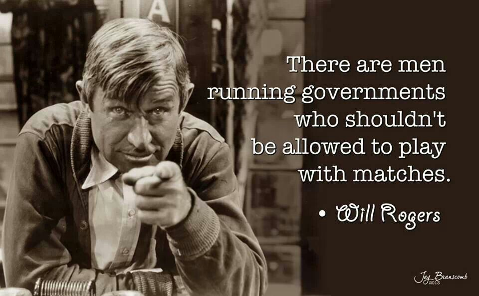 There are men running governments who shouldn't be allowed to play with matches. -Will Rogers