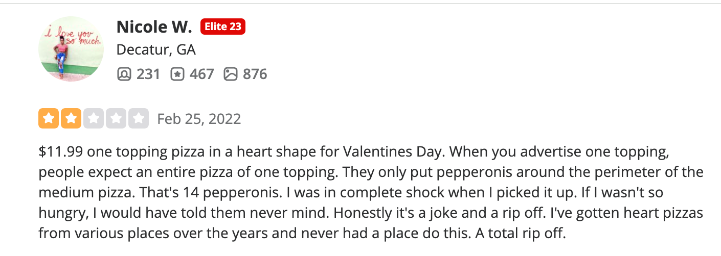 In line with the rest of the collapse of polite society, expectations have become absurd. Go through some Yelp reviews sometime. Folks discuss the local outdoor burger stand as if they were dining at The Palm. The corporate pizza delivery place that got a pie here in 25 minutes was not like the pizza we had in Rome, WTF???