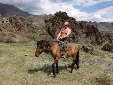 Calling his bluff means you are calling it for the entire world. That is the calculus that all the world leaders who are involved in this decision have to weigh. Now, Pentagon leaders have to be also watching this unfolding Chernobyl of a battle plan, literally, and thinking to themselves, "Man, they really suck at this." But the humiliation of the war's first week may make Putin even more unpredictable. After all, when you spend your free time being photographed bare-chested on horseback, your self esteem is already teetering like Humpski-Dumpski and this fubar exercise may just make him more inclined toward some nuclear manhood compensation.